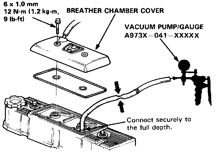 2. Remove the front breather chamber cover and connect a vacuum pump to the PCV valve.
