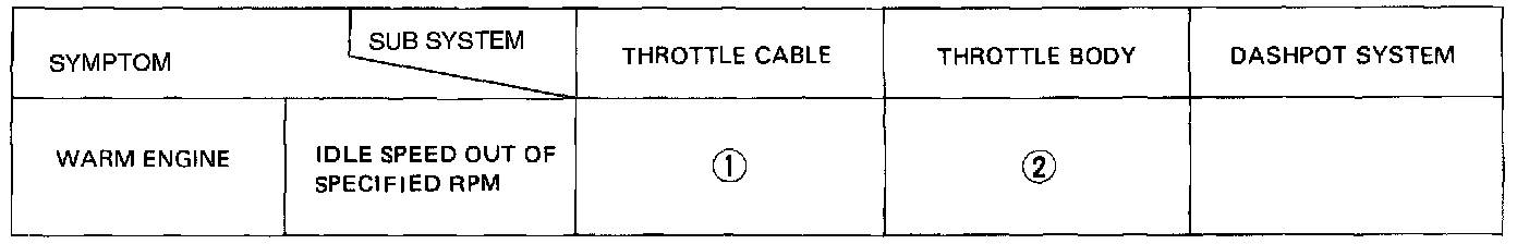 NOTE: Across each row in the chart, the sub systems that could be sources of a symptom are ranked in the order they should be inspected, starting with (1). Find the symptom in the left column, read across to the most likely source, then refer to the system or component listed at the top of that column. If inspection shows the system is OK, try the next system (2), etc.