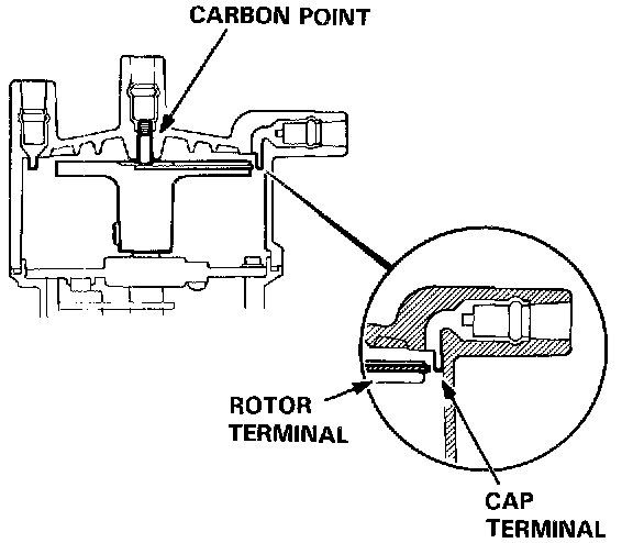 1. Check for rough or pitted rotor and cap terminals.