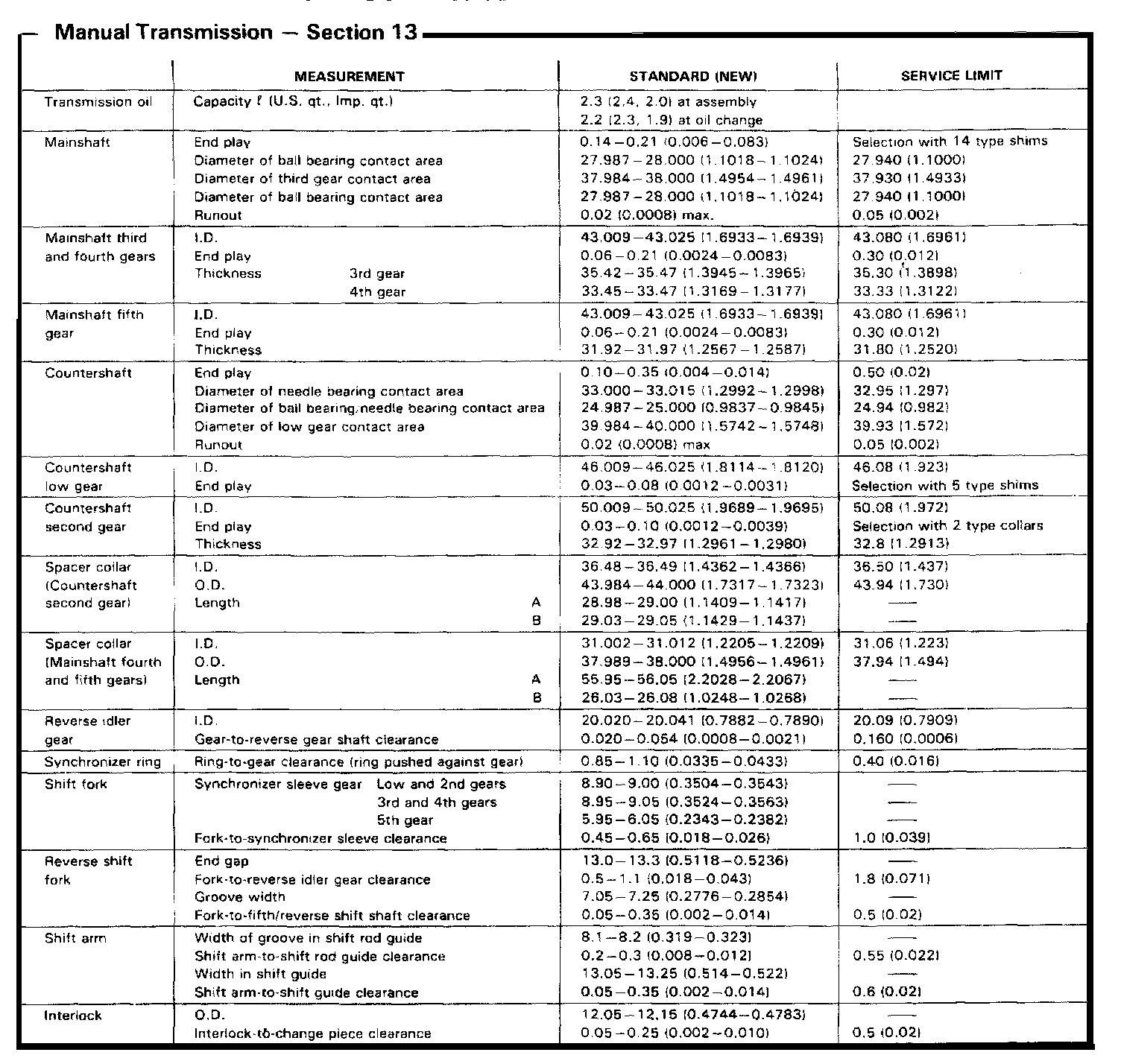 C3F4 5-spd M/T, Shaft Thickness / End Play: