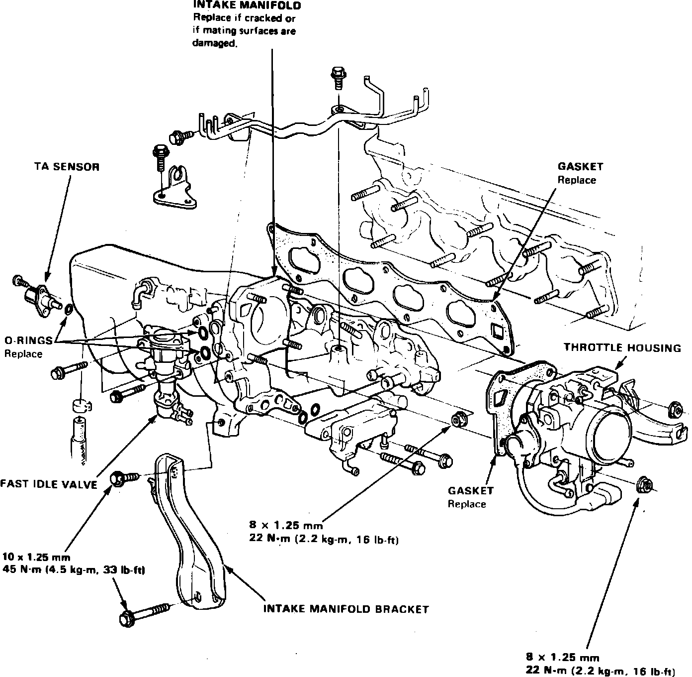 Fig. 4 Intake manifold replacement. 1986-87 Integra (1988 similar):