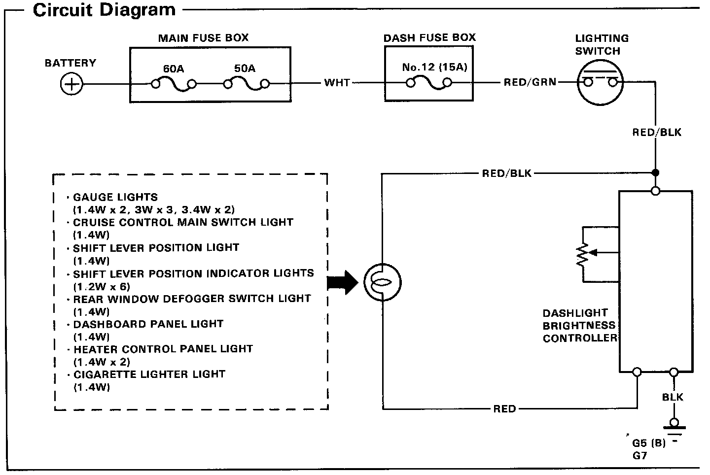 Make the following input tests at the harness pins. If all tests prove OK, yet the dashlights still can not be controlled, check the connector for good connection. If OK, then replace the controller.