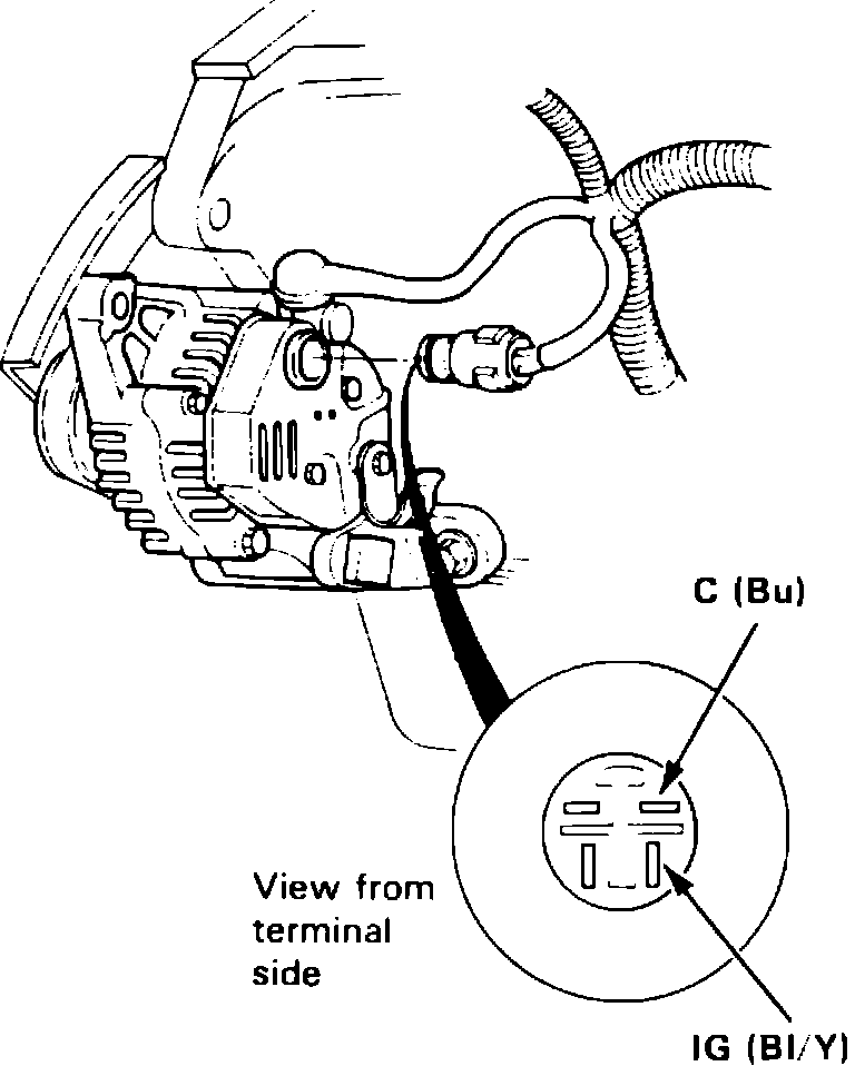 Fig. 5 Alternator test connections. 1988 Integra: