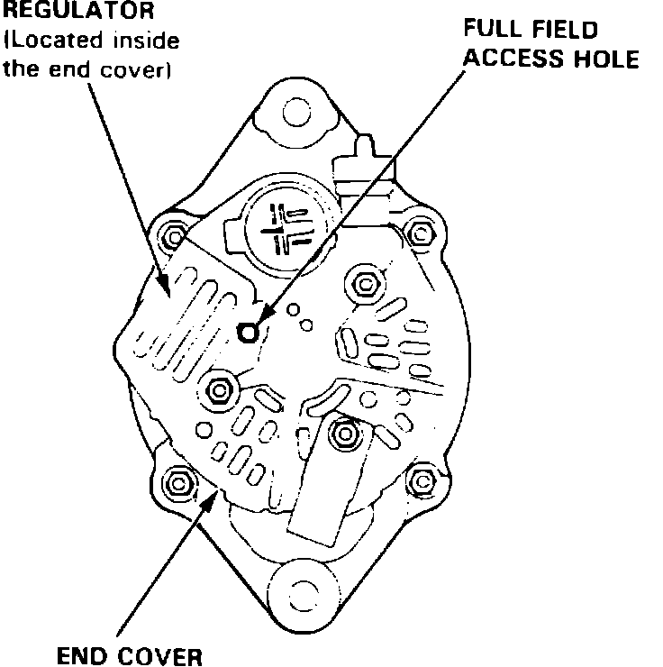 13. Attach probe to full field test lead on analyzer and insert probe into access hole at back of alternator, Fig. 8. Switch analyzer to ``A'' (ground) position and check maximum amperage reading. Voltage will rise quickly when performing this operation. Do not allow voltage to exceed 18 volts, or damage to system may result.