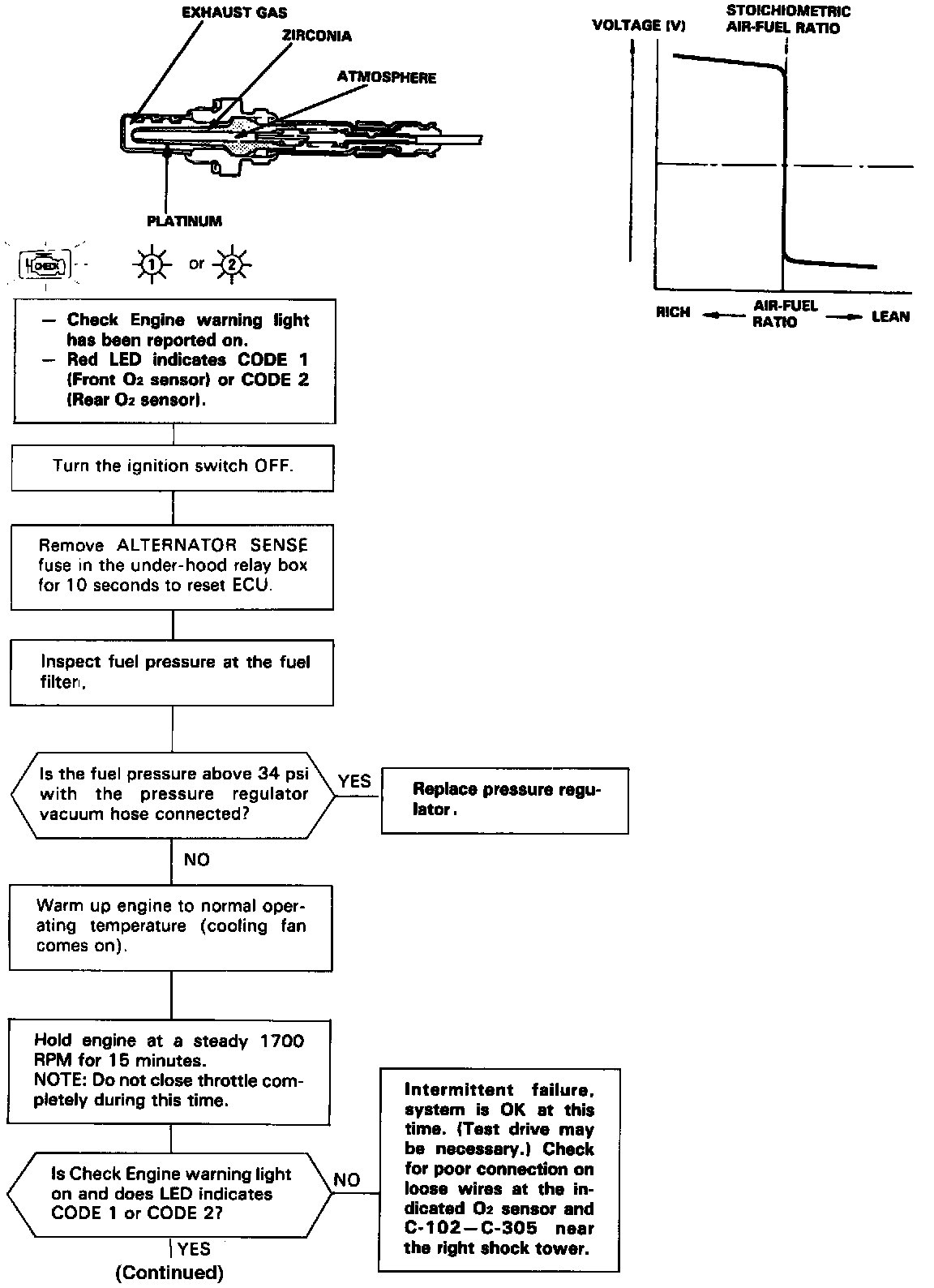 Self-diagnosis Red LED blinks once: A problem in the Front Oxygen (O2) Sensor circuit.