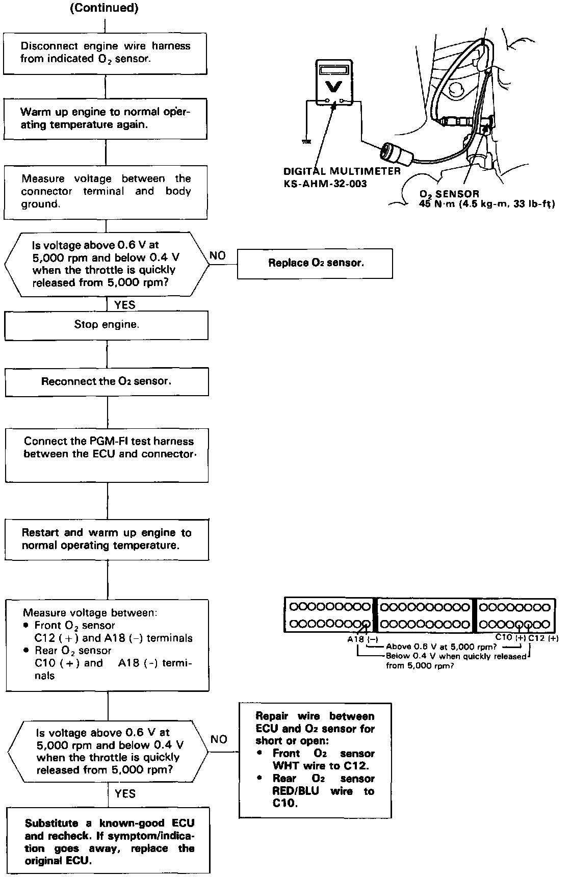 The oxygen sensor, detects the oxygen content in the exhaust gas, and inputs the ECU. In operation, the ECU receives the signals from the sensor and varies the duration during which fuel is injected. The oxygen sensors are installed on the exhaust manifolds.