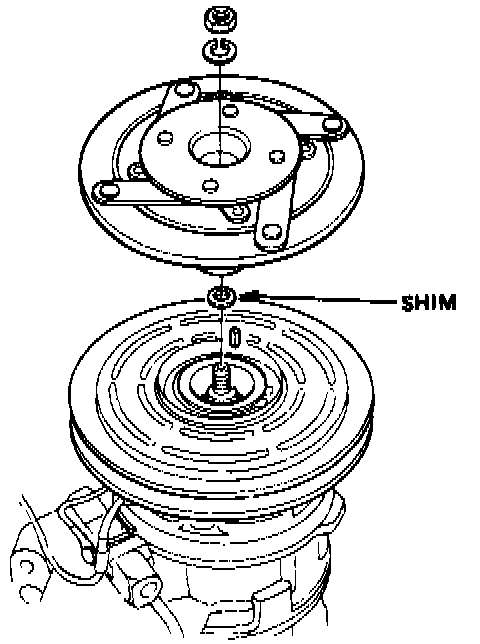 - Tighten the hub nut to 15 - 17.5 Nm (1.5 - 1.75 kg-m, 11 - 12.7 lb-ft) and measure the clearance between the pulley and pressure plate all the way around. If the clearance is not within specified limits, the pressure plate must be removed and shims added or removed as required.