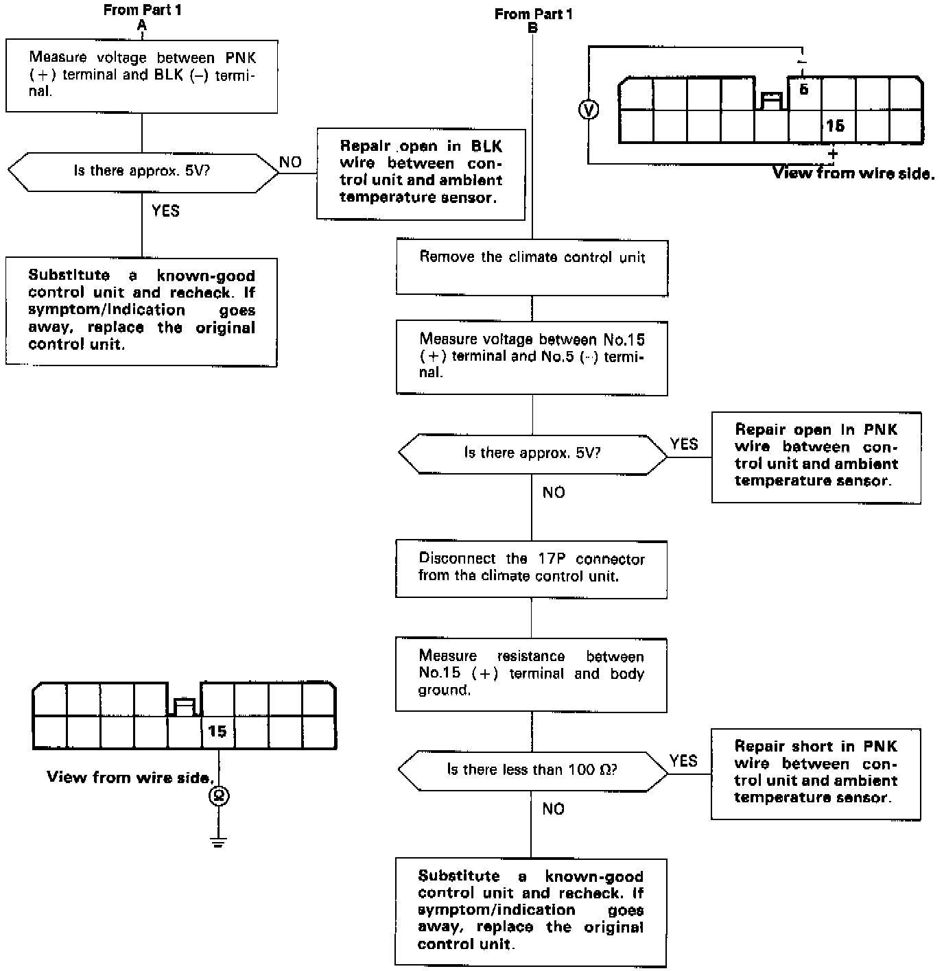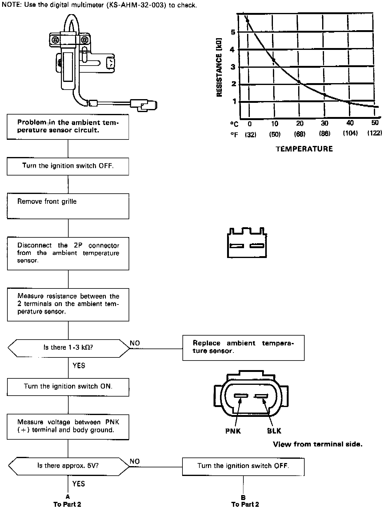 Self-diagnosis indicator light G comes on: Indicates a problem in the Ambient Temperature Sensor Circuit.The ambient temperature sensor is a temperature dependant resistor (thermistor). The resistance of the thermistor decreases as the temperature outside the car increases.
