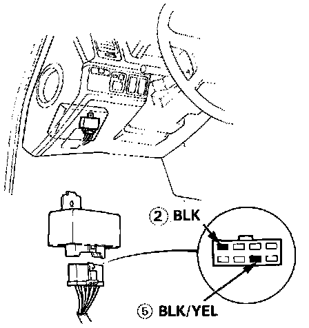 5. Attach the positive probe of voltmeter to the BLK/YEL wire (5) and the negative probe to the BLK wire (2).