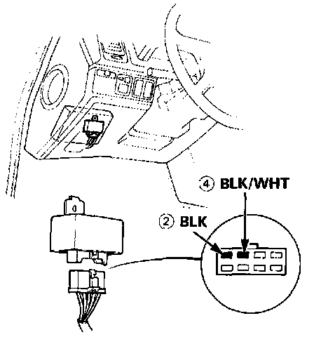 7. Attach the positive probe of voltmeter to the BLK/WHT wire (4) and the negative probe to the BLK wire (2).