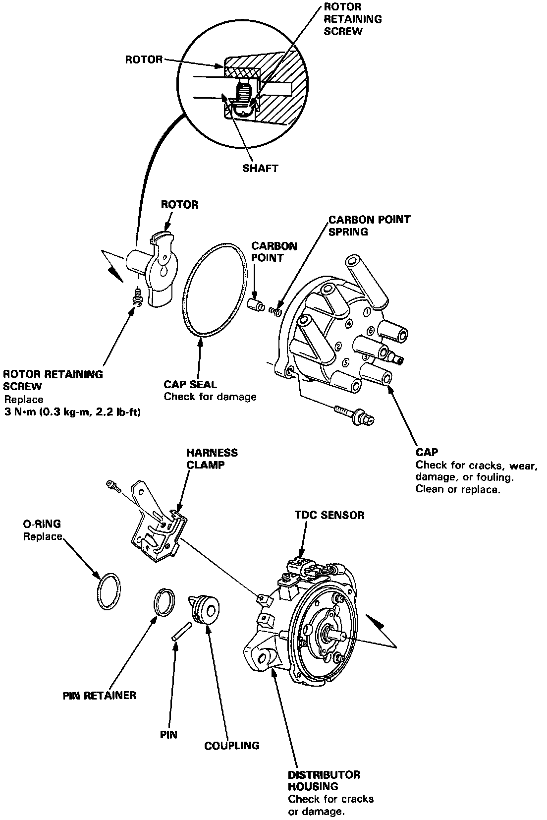 1. Check for rough or pitted rotor and cap terminals.