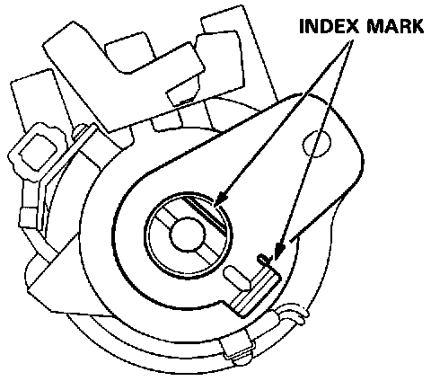 3. Check that the rotor is still pointing toward the No.1 cylinder, then align the index mark on the housing with the index mark on the coupling.