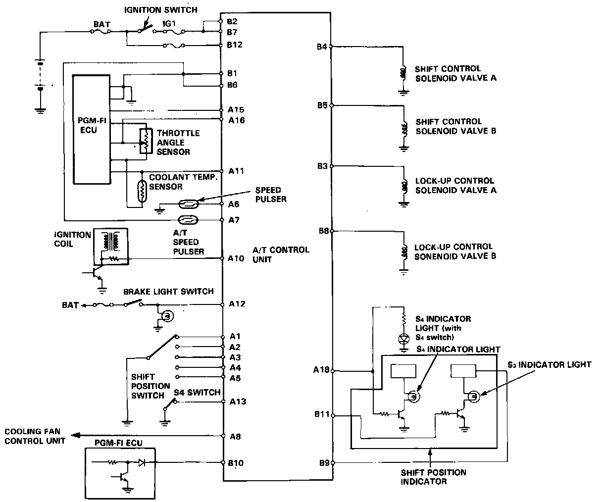 - From various input signals, the A/T control unit controls the shift control solenoid valves A and B and the lock-up control solenoid valves A and B.