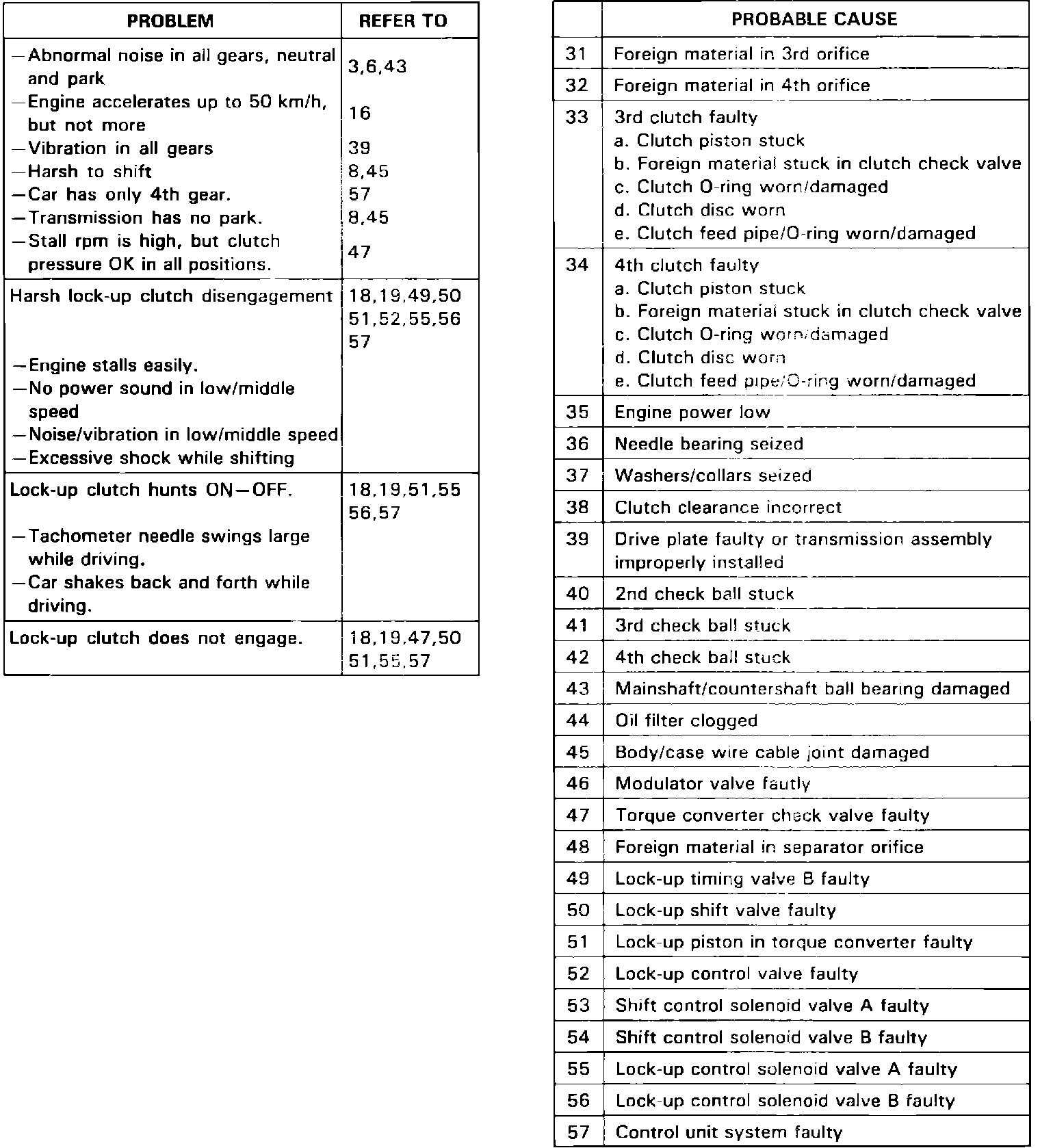 Transaxle Troubleshooting Chart