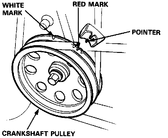 2. Connect a timing light to the engine; while the engine idles, point the light toward the pointer on the timing belt cover.