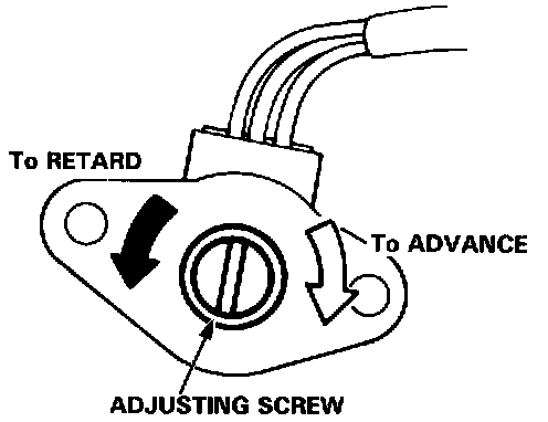 4. Adjust ignition timing, if necessary, by turning the adjusting screw on the ignition timing adjuster in the control box.