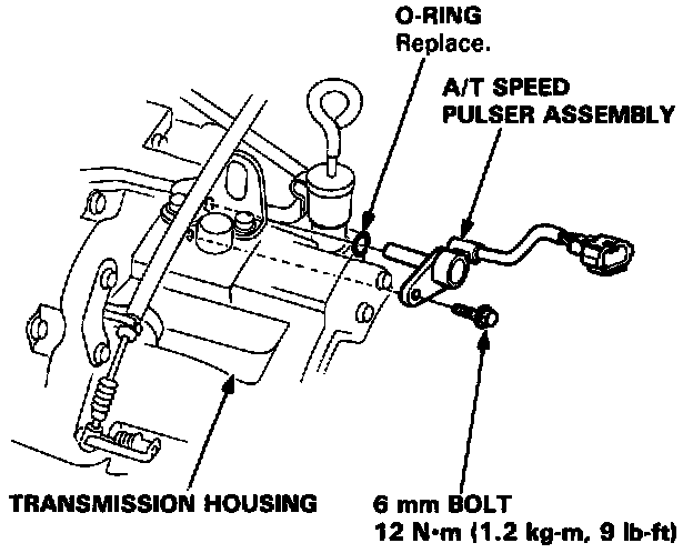Removal/Inspection1. Remove the 6 mm bolt from the transmission housing and remove the A/T speed pulser assembly.