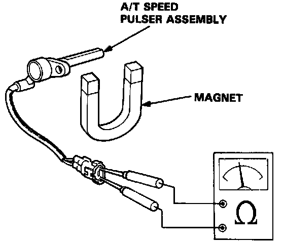 2. Bring a magnet close to the A/T speed pulser assembly and check for continuity.