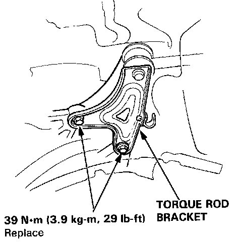 13. Install and tighten the new torque rod bracket bolts to 39 N.m (3.9 kg-m, 29 lb-ft).