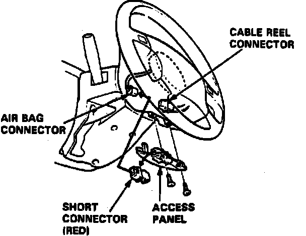 1. To avoid accidental deployment and possible injury, always install protective short connector on inflator connector when harness is disconnected.