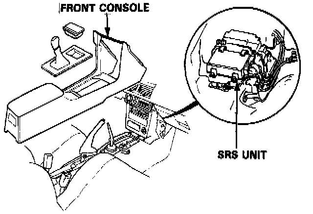NOTE: SRS wire harness is routed near the console.WARNING: All SRS wire harness and connectors are colored yellow. Do not use electrical test equipment on these circuits.