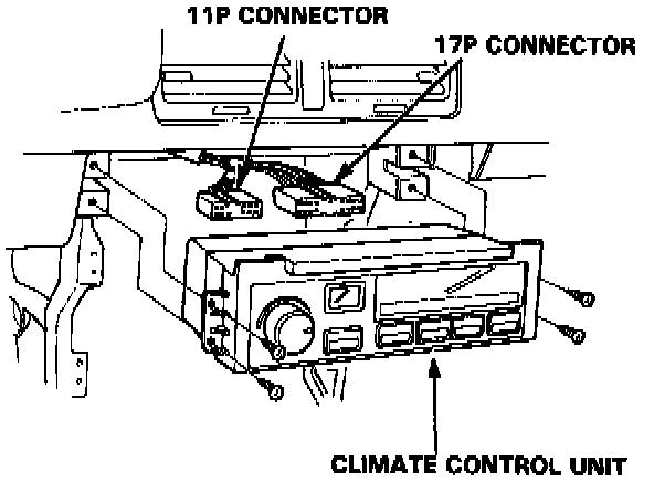 3. Disconnect the wire harness from the climate control unit before removing.