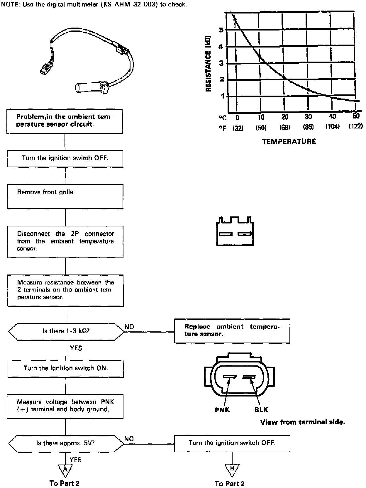 Self-diagnosis indicator light G comes on: Indicates a problem in the Ambient Temperature Sensor circuit.The ambient temperature sensor is a temperature dependant resistor (thermistor). The resistance of the thermistor decreases as the temperature outside the car increases.