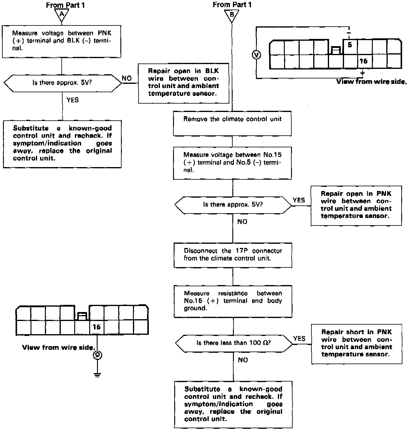 Self-diagnosis indicator light G comes on: Indicates a problem in the Ambient Temperature Sensor circuit.The ambient temperature sensor is a temperature dependant resistor (thermistor). The resistance of the thermistor decreases as the temperature outside the car increases.