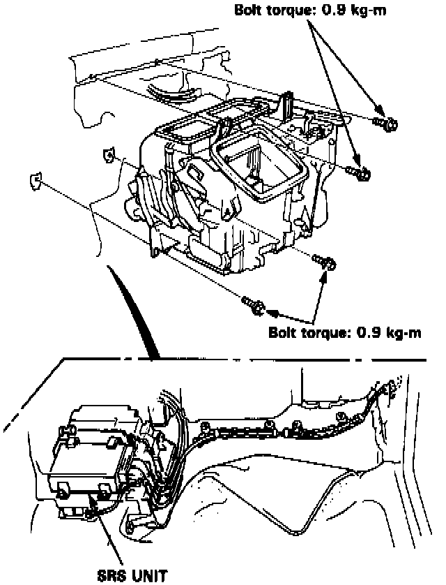 CAUTION: Be careful not to damage SRS wire harness when servicing the heater.