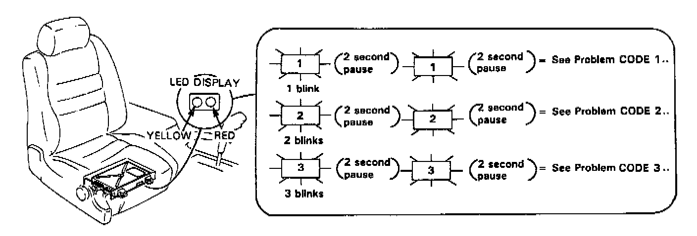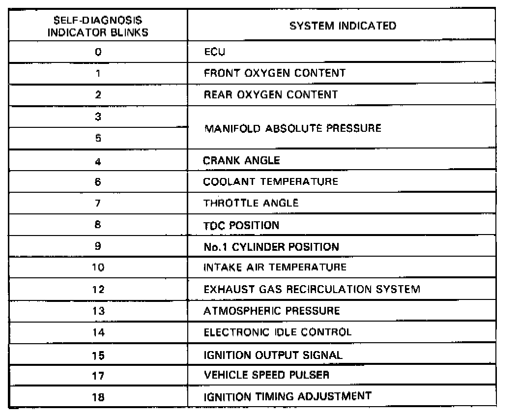 - If code No. 11, 16 or a number greater than 18 is displayed, count the number of blinks again, if the indicator is in fact blinking these codes, substitute a known-good ECU and recheck. If the indication goes away, replace the original ECU.