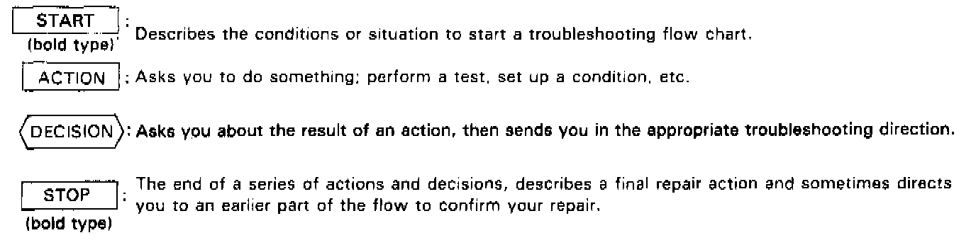 A flow chart is designed to be used from start to final repair. It's like a map showing you the shortest distance. But beware; if you go off the "map" anywhere but a "stop" symbol, you can easily get lost.