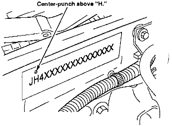 6. Center-punch a completion mark above the "H" in the engine compartment VIN.