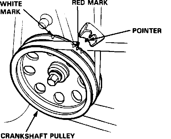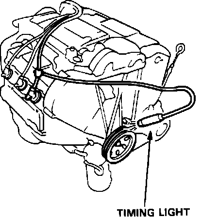 2. Connect a timing light to the engine; while the engine idles, point the light toward the pointer on the timing belt cover.