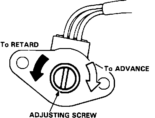 4. Adjust ignition timing, if necessary, by turning the adjusting screw on the ignition timing adjuster in the control box.