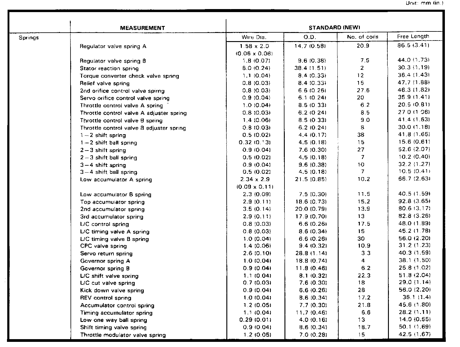 L5 4-spd A/T, Thrust Washer Thickness & Valve/Servo Body Clearance: