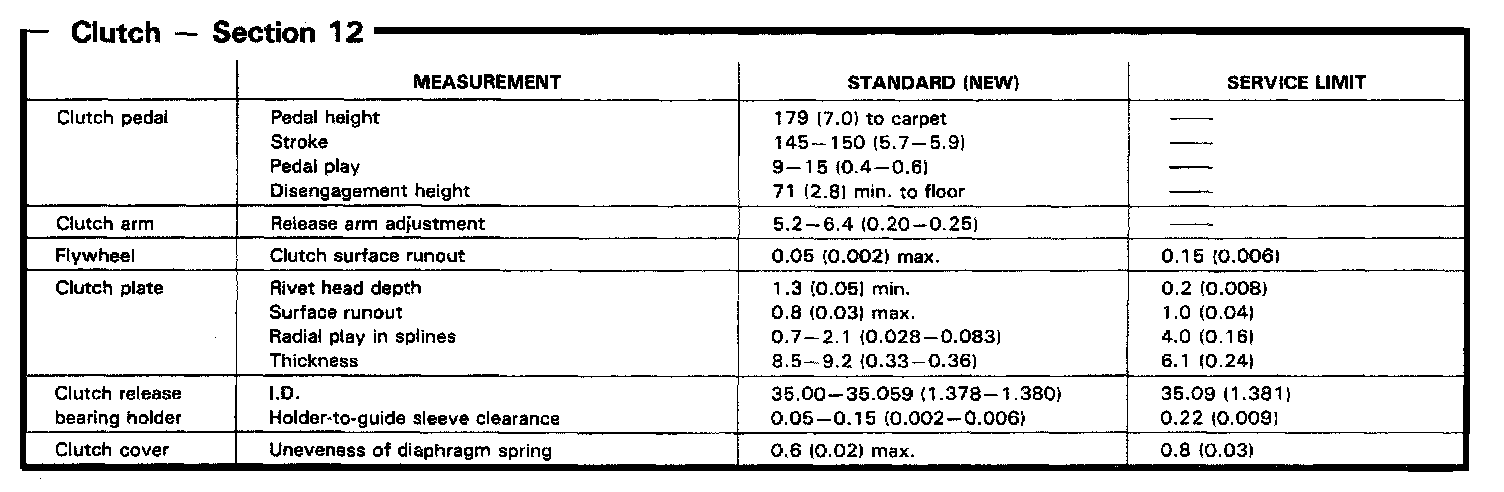 G3T4 5-spd M/T, Clutch Dimensions: