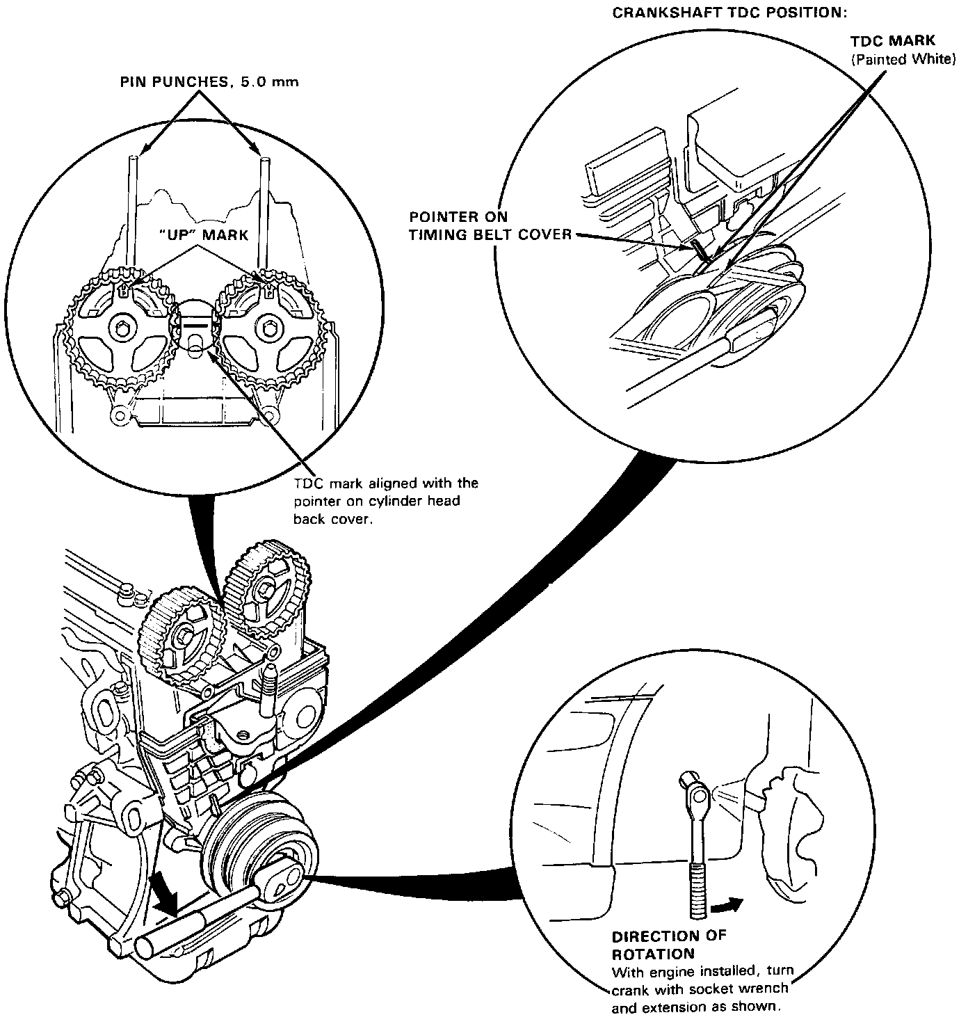 Incorrect removal or installation of the timing belt can result in damage to internal engine components.