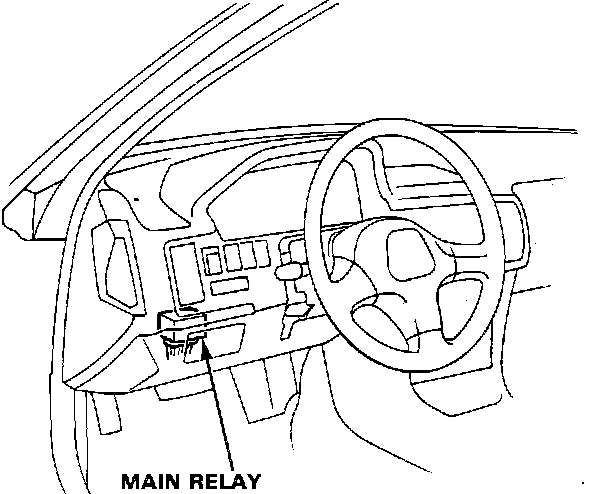 The Fuel Pump Main Relay is located under the dashboard area. It is to the left of the steering wheel, mounted on the back of the fuse panel.
