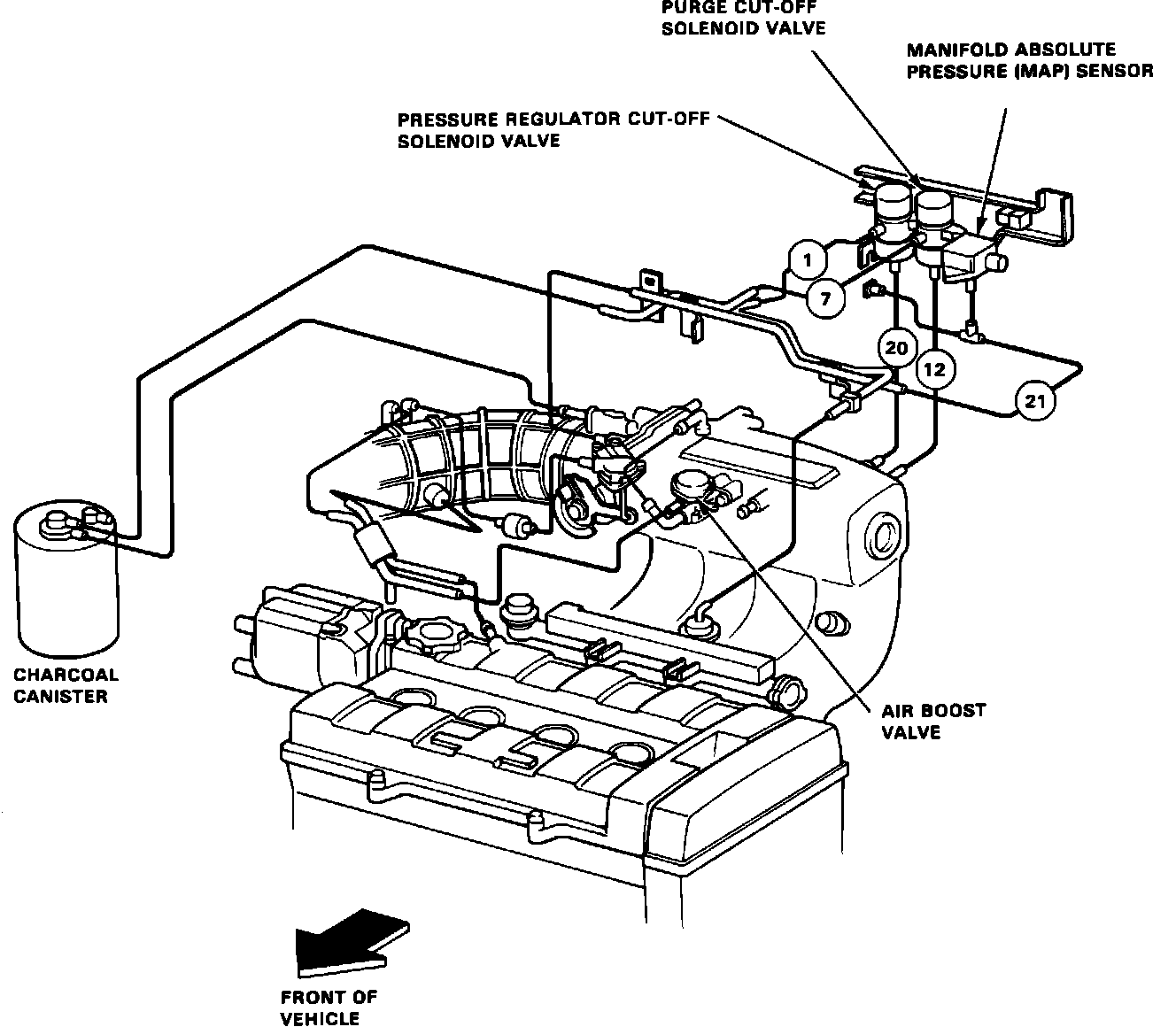 Fig. 9 Vacuum Connections (Manual Transmission):
