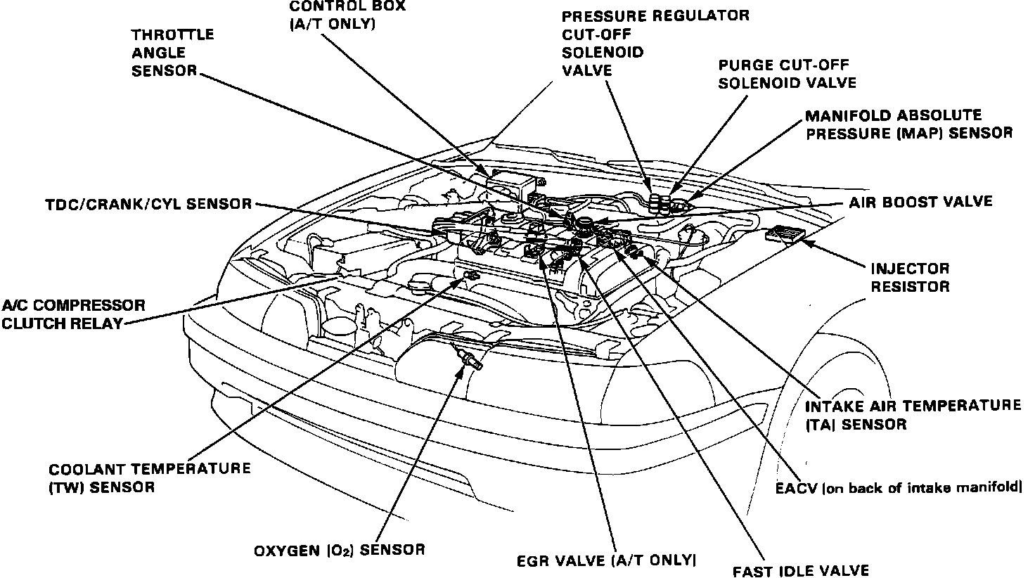 The TDC/CRANK sensor is mounted inside the distributor which is driven by the intake camshaft. Fig. 1