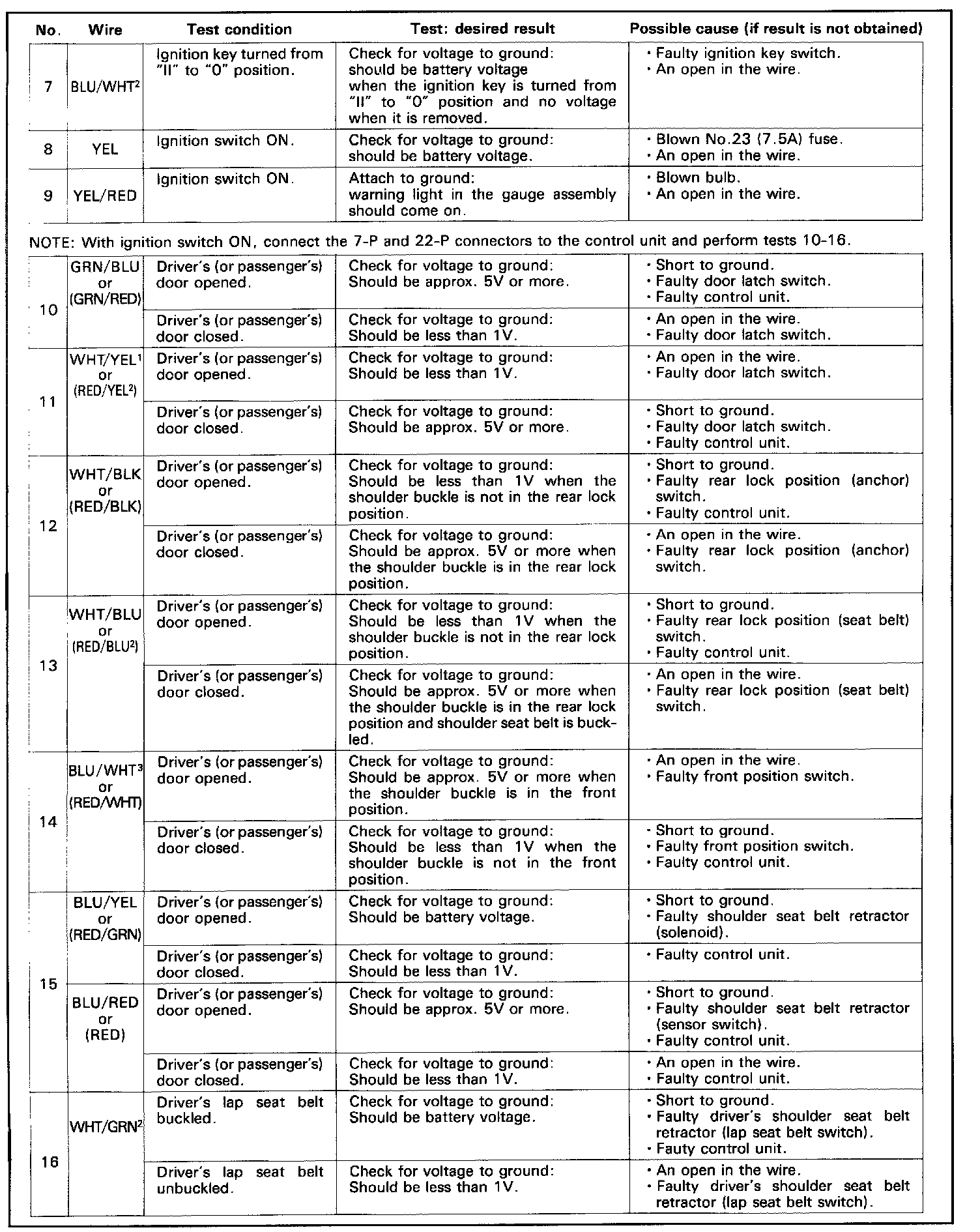 Seat Belt Control Module: Testing and Inspection