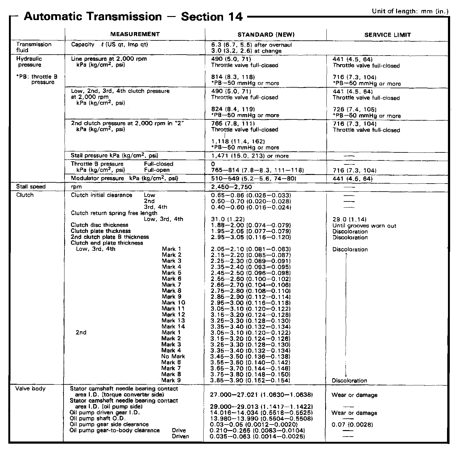 RO 4-spd A/T, Line Pressure, Stall Speed & Clutch/Valve Body: