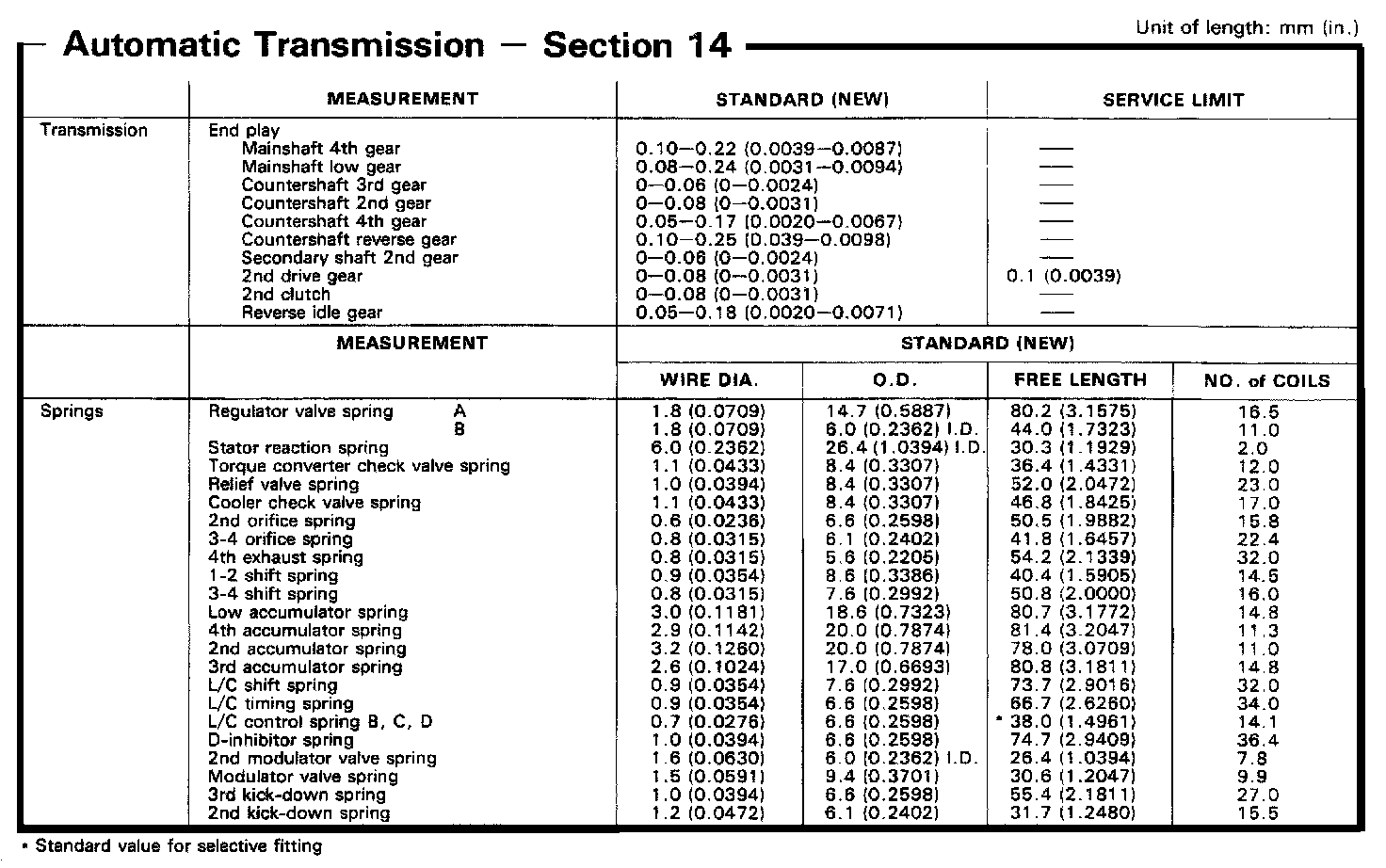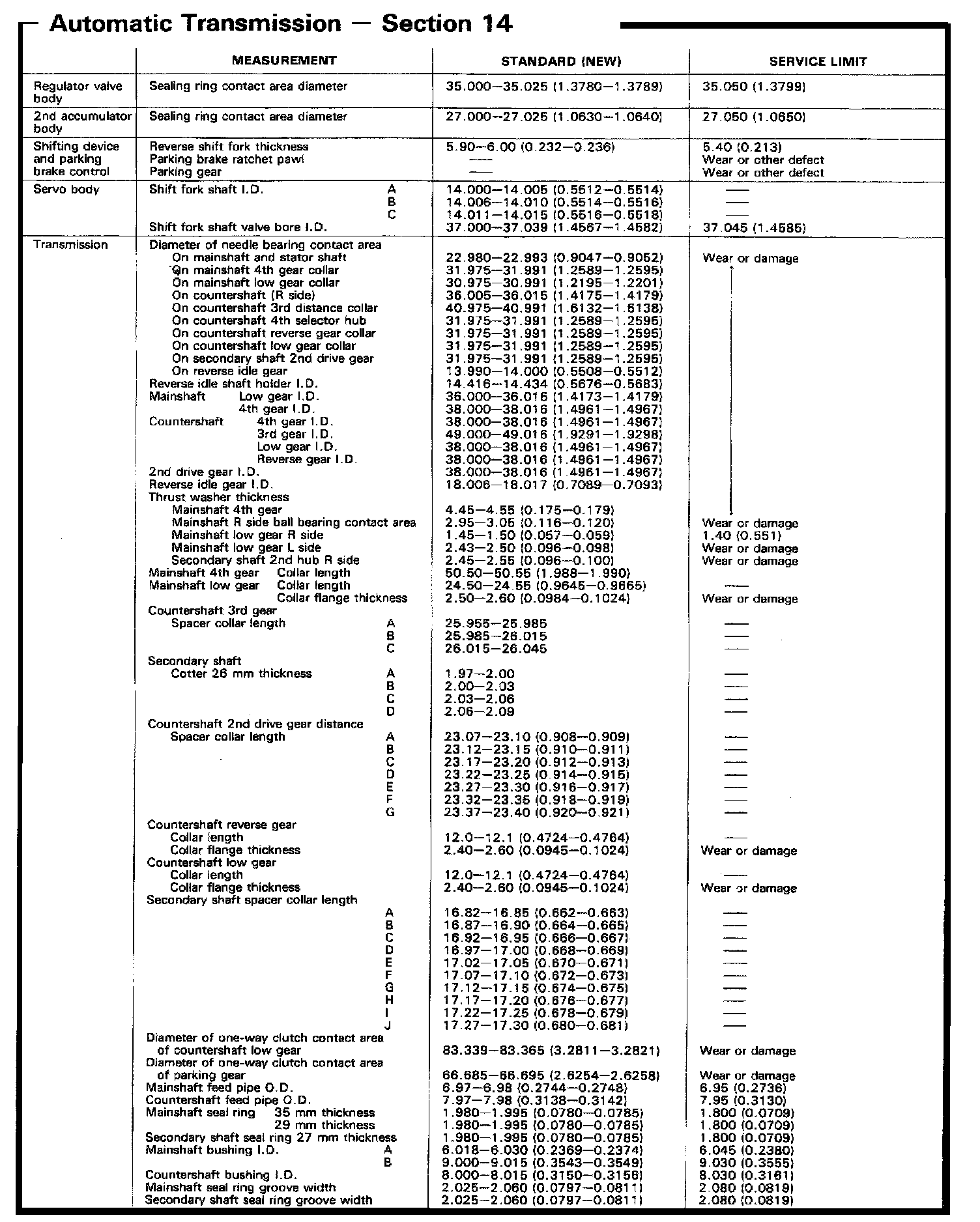 RO 4-spd A/T, Regulator/Accumulator Body & Shaft Diameter/Thickness: