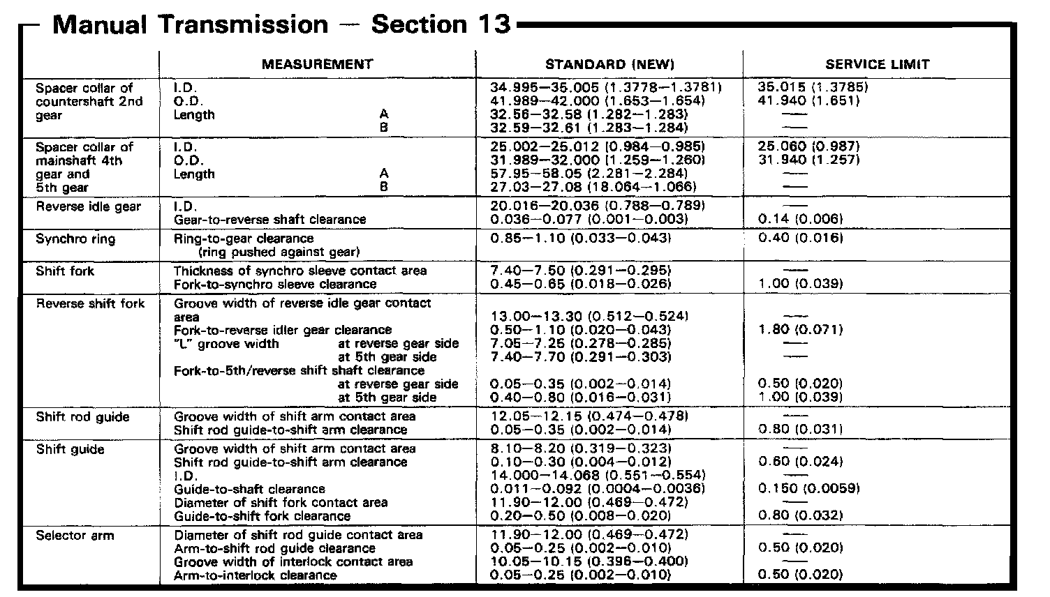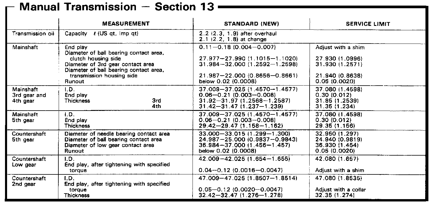 S1 5-spd M/T, Main & Counter Shaft Runout/Thickness: