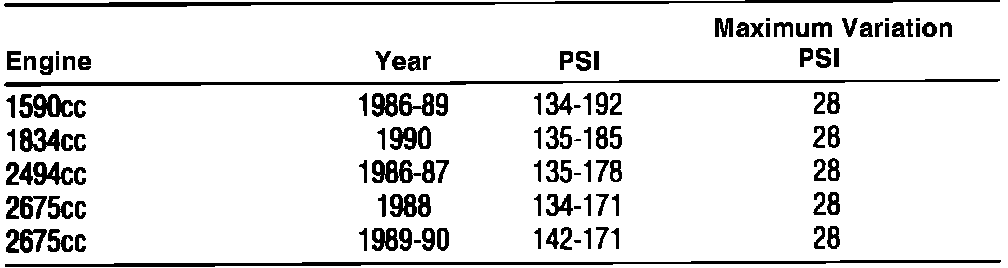 removed, and throttle wide open. When checking compression, lowest cylinder should be within 80 percent of highest.