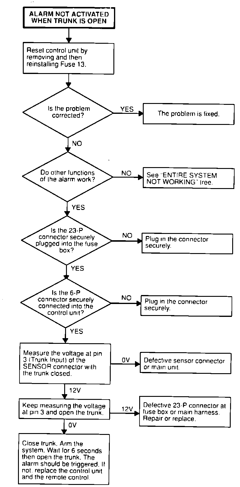 Alarm Will Not Activate When Trunk Is Opened