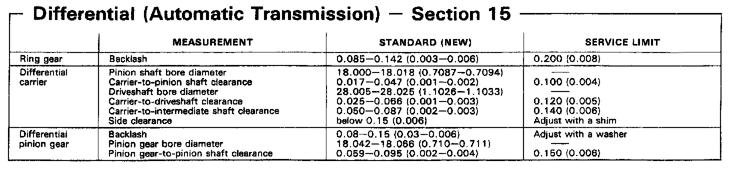 Automatic Transmission Differential Clearances: