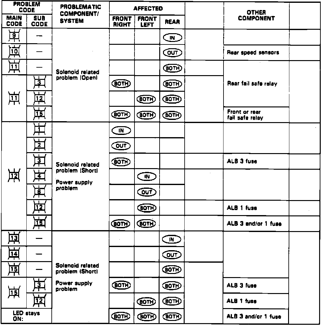Fig. 17 Trouble Code Chart (91 Legend):