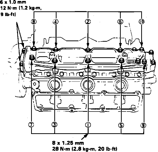 Fig. 47 Camshaft Bearing Cap Bolt Tightening Sequence: