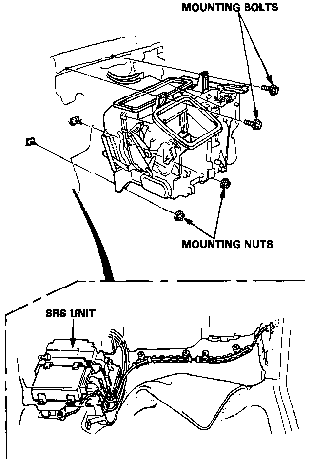 CAUTION: Be careful not to damage SRS wire harness when servicing the heater.